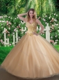 Affordable A Line Champagne Sweet 16 Gowns with Beading