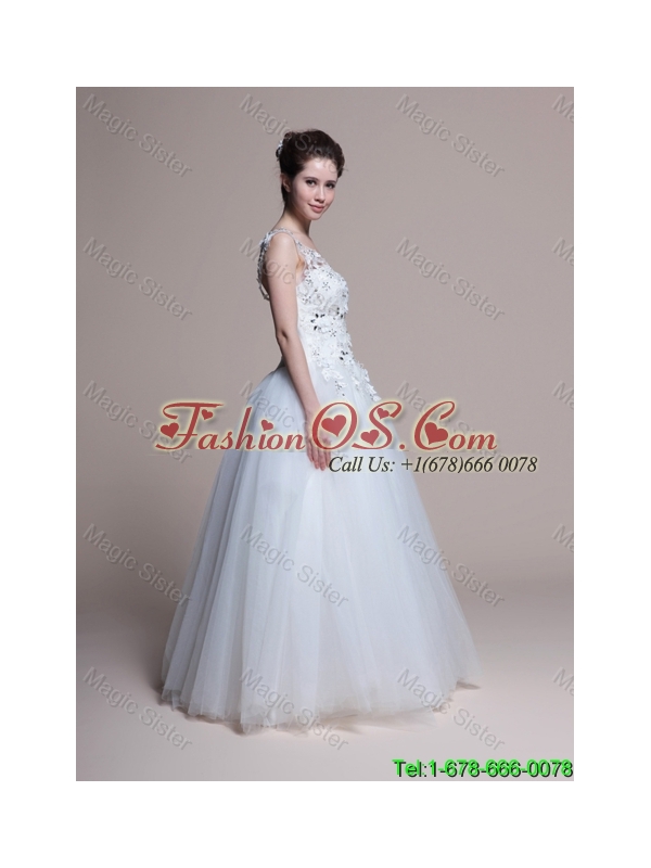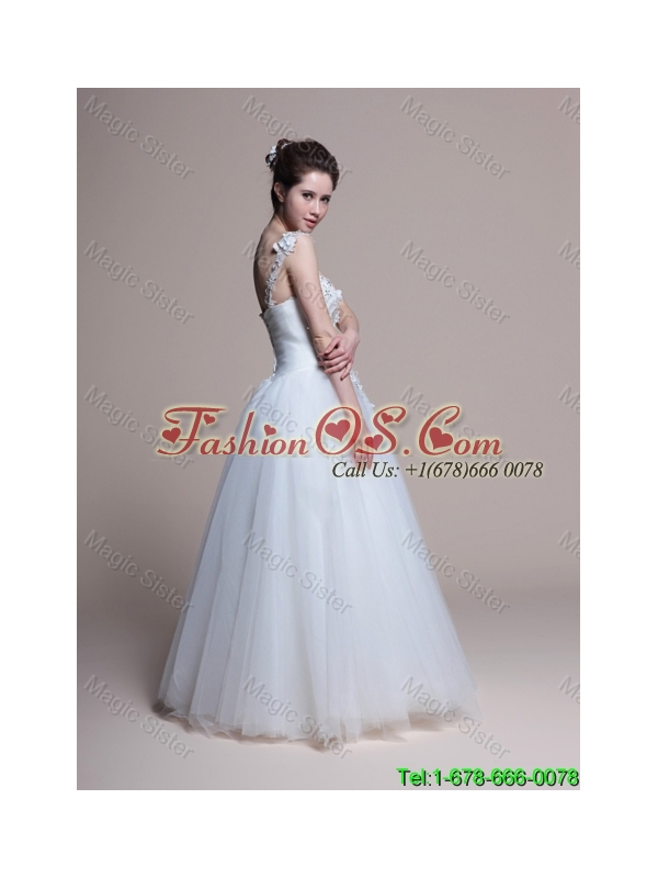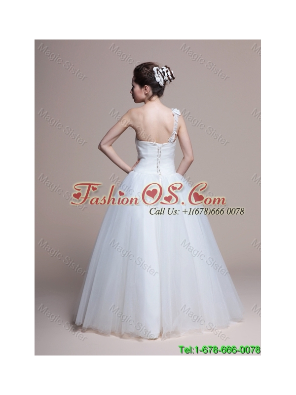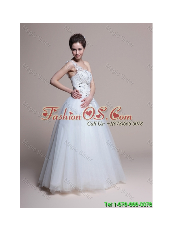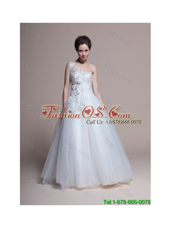 Affordable A Line One Shoulder Appliques Wedding Dresses in Tulle