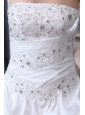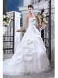 Affordable A-line Strapless Beading and Appliques Wedding Dress Court Train Organza
