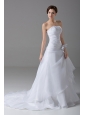 Warning: number_format() expects parameter 2 to be long, string given in /home/fashonos/domains/fashionos.com/public_html/includes/classes/currencies.php on line 52 Affordable A-Line Strapless Court Train Organza Wedding Dress Handle-Made Flower- CHF