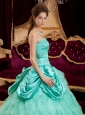 Affordable Apple Green Quinceanera Dress Strapless Ruffles Taffeta and Organza Ball Gown