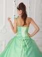 Affordable Apple Green Sweet 16 Dress One Shoulder Organza Beading and Hand Flower Ball Gown