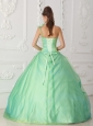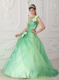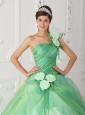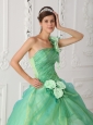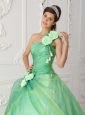 Home >  Quinceanera Dresses >  Sweet 16 Dresses > Affordable Apple Green Sweet 16 Dress One Shoulder Organza Beading and Hand Flower Ball Gown