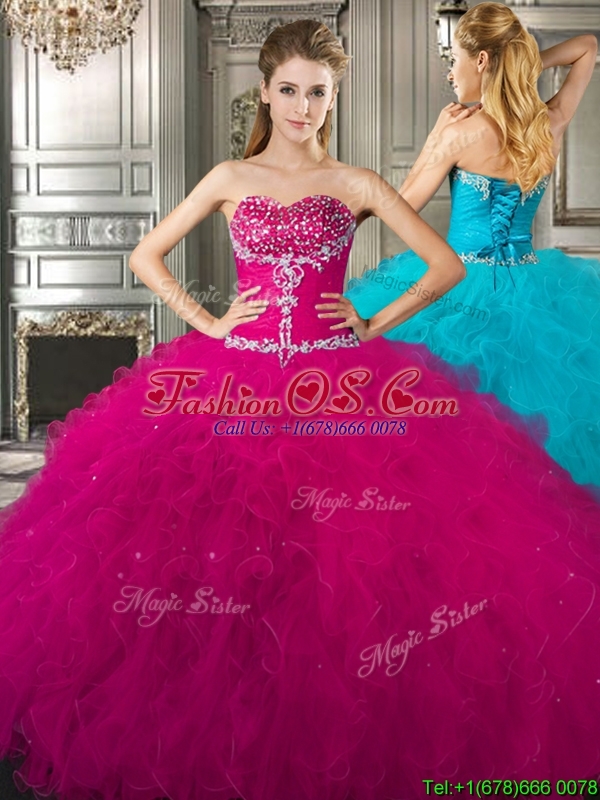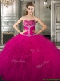 Affordable Beaded and Ruffled Fuchsia Sweet 16 Dress in Tulle