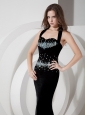 Home >  Evening Dresses > Affordable Black Mermaid Halter Evening Dress Silk Like Satin Beading Brush Train