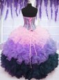 Affordable Blue Organza and Sequined Lace Up Quince Ball Gowns Sleeveless Floor Length Beading and Ruffles