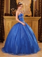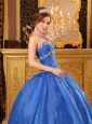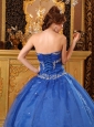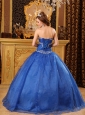 Affordable Blue Quinceanera Dress Sweetheart Organza Appliques Ball Gown