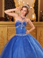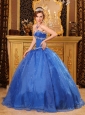 Home >  Quinceanera Dresses >  Discount Quinceanera Dresses > Affordable Blue Quinceanera Dress Sweetheart Organza Appliques Ball Gown