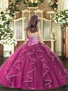 Home >  Special Occasion Dresses >  Lovely Little Girl Pageant Dresses > Affordable Brown Sleeveless Floor Length Beading and Ruffles Lace Up Little Girls Pageant Dress