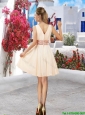Affordable Champagne V Neck Prom Dresses with Belt and Ruching