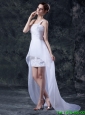 Affordable Column One Shoulder High low Wedding Dresses with Appliques