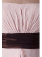 Affordable Empire Strapless Tea-length Chiffon Pink Belt Prom Dress