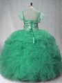 Affordable Floor Length Green Sweet 16 Quinceanera Dress Tulle Sleeveless Beading and Ruffles