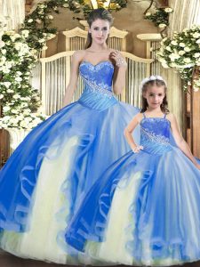 Affordable Floor Length Multi-color Sweet 16 Dress Tulle Sleeveless Beading and Ruching
