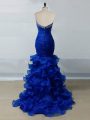 Affordable Floor Length Zipper Formal Evening Gowns Royal Blue for Prom and Party and Military Ball and Sweet 16 with Beading and Ruffles and Ruching