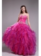Affordable Fuchsia Quinceanera Dress Sweetheart Orangza Appliques Ball Gown