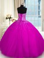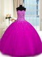 Affordable Fuchsia Sweetheart Lace Up Beading Quince Ball Gowns Sleeveless