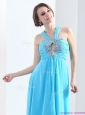 Affordable Halter Top Criss Cross Elegant Prom Dresses with Beading