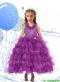 Affordable Halter Top Little Girl Pageant Dress with Beading and Ruffled Layers