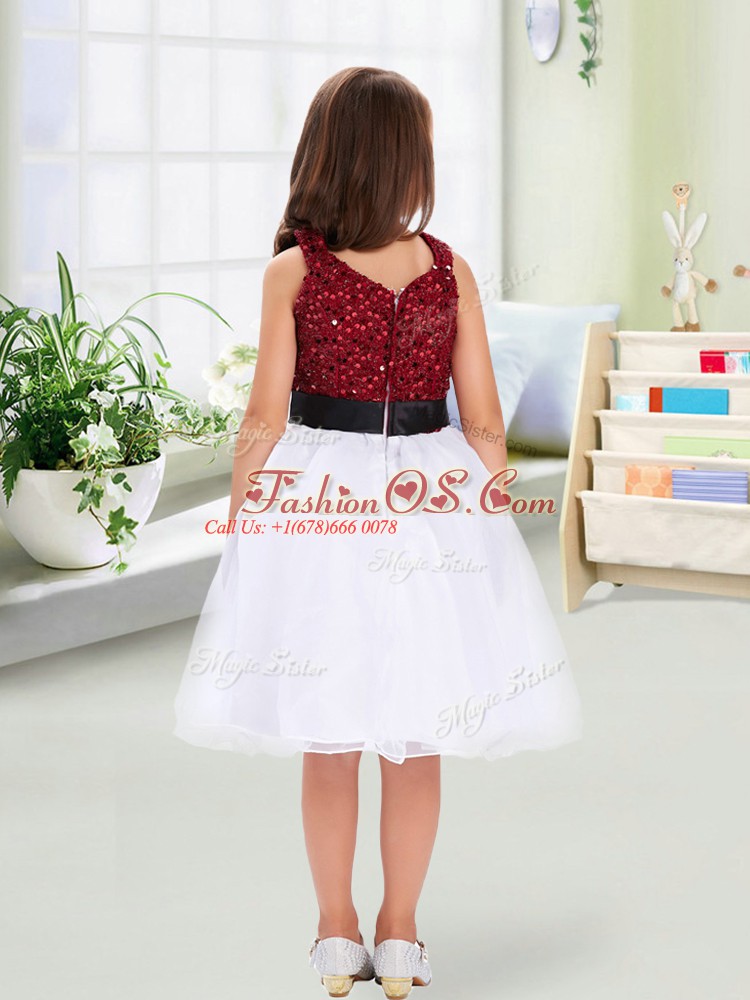 Affordable Knee Length Zipper Flower Girl Dress Blue And White for Wedding Party with Sequins and Hand Made Flower
