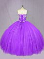 Affordable Lavender Sleeveless Floor Length Beading Lace Up Sweet 16 Dress