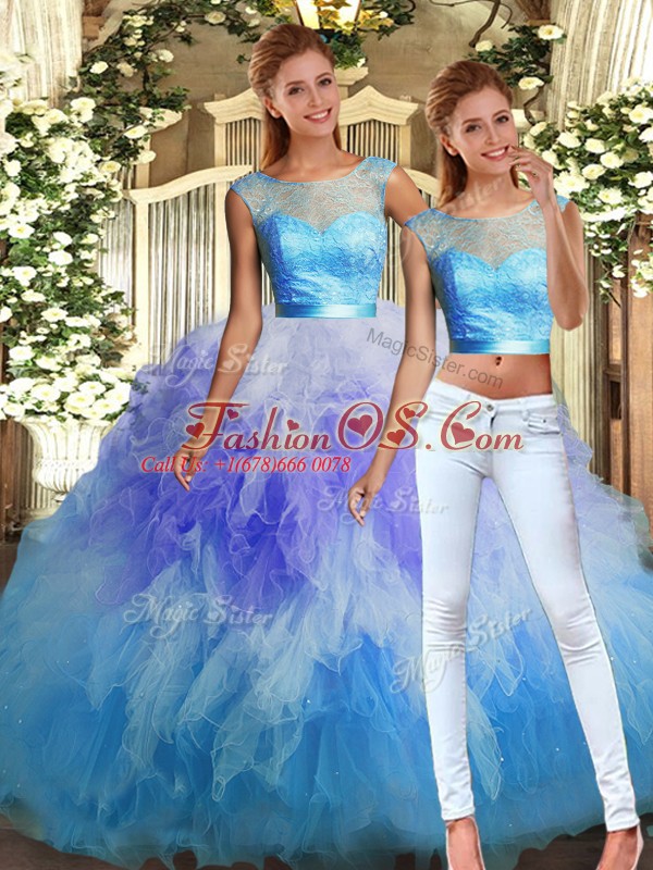 Affordable Multi-color Backless 15 Quinceanera Dress Lace and Ruffles Sleeveless Floor Length