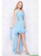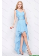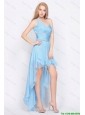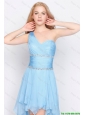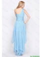 Affordable One Shoulder Beading High Low Prom Dresses in Baby Blue
