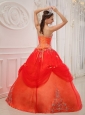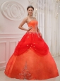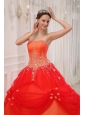 Warning: number_format() expects parameter 2 to be long, string given in /home/fashonos/domains/fashionos.com/public_html/includes/classes/currencies.php on line 52 Affordable Orange Red Quinceanera Dress Strapless Taffeta and Tulle Appliques Ball Gown-