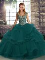 Affordable Peacock Green Lace Up 15th Birthday Dress Beading and Ruffles Sleeveless Floor Length