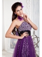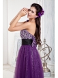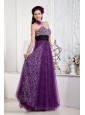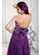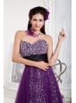 Home >  Prom Dresses >  Unique Prom Dresses > Affordable Purple Empire Prom Dress Sweetheart Tulle and Leopard Beading and Bow Floor-length
