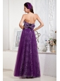 Affordable Purple Empire Prom Dress Sweetheart Tulle and Leopard Beading and Bow Floor-length