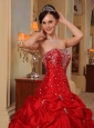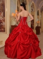 Home >  Quinceanera Dresses >  Popular Quinceanera Dresses > Affordable Red Quinceanera Dress Strapless Taffeta Beading and Embroidery Ball Gown
