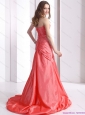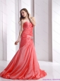 Affordable Ruching and Beading Prom Dress with Brush Train