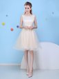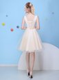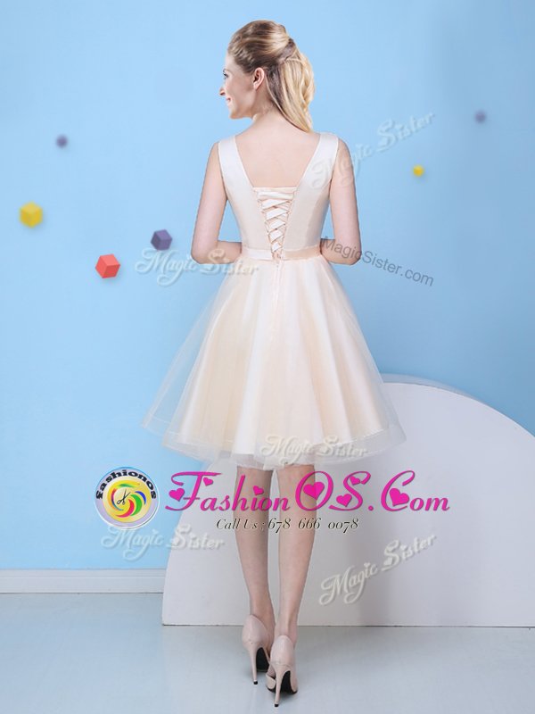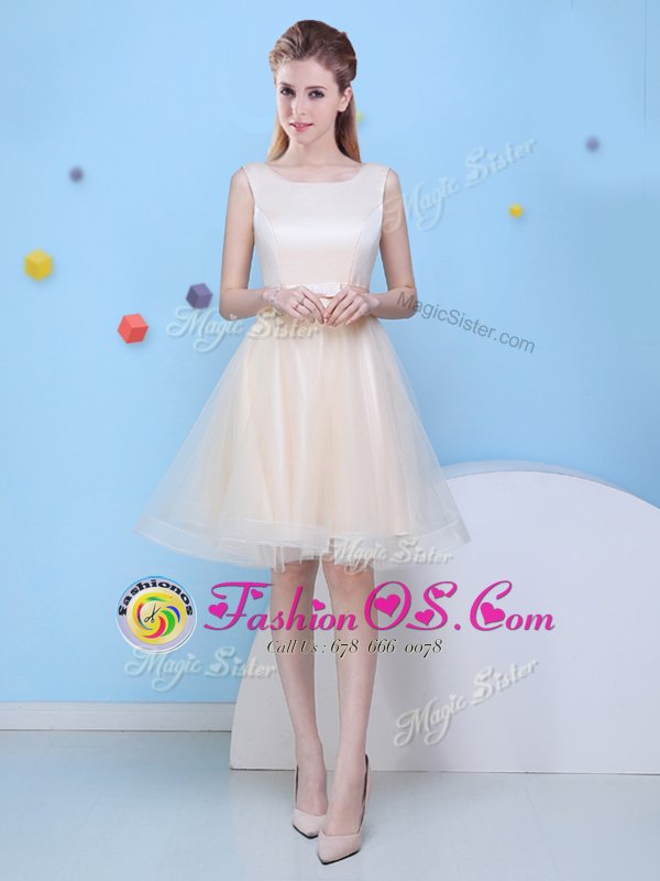 Affordable Scoop Champagne Lace Up Vestidos de Damas Bowknot Sleeveless Knee Length