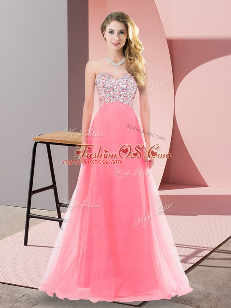 Affordable Sweetheart Sleeveless Tulle Prom Evening Gown Beading Lace Up