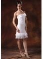 Make an entrance in this elegant and romantic white knee-length gown. The strapless bodice hemed by the ruches is simple yet gorgeous. An exquisite floral embellishment adds interest and detail to the bust area of the dress. The other spotlight is the lace over-lay hemline. The simple hidden zipper up completes the look.Simple yet graceful. It is a great choice for you.