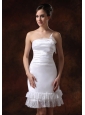 Affordable Taffeta Strapless Knee-length Column / Sheath Lace Wedding Dress