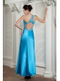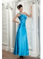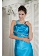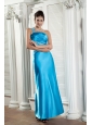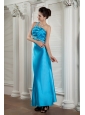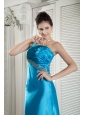 Home >  Prom Dresses >  Elegant Prom Dresses > Affordable Teal Column Prom Dress One Shoulder Beading and Ruch Ankle-length Satin