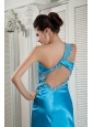 Affordable Teal Column Prom Dress One Shoulder Beading and Ruch Ankle-length Satin