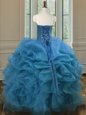 Affordable Turquoise Sleeveless Floor Length Appliques and Pick Ups Lace Up 15 Quinceanera Dress