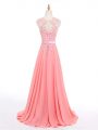 Affordable Watermelon Red Sleeveless Brush Train Beading and Lace Evening Outfits