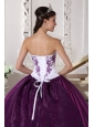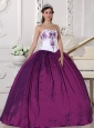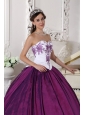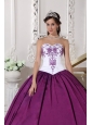 Affordable White and Dark Purple Quinceanera Dress Sweetheart Taffeta Embroidery Ball Gown
