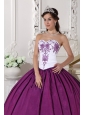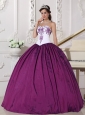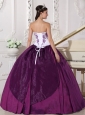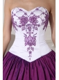 Home >  Quinceanera Dresses >  Sweet 16 Dresses > Affordable White and Dark Purple Quinceanera Dress Sweetheart Taffeta Embroidery Ball Gown
