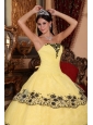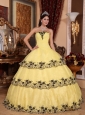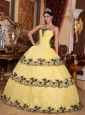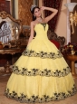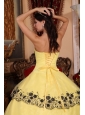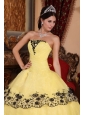 Affordable Yellow Quinceanera Dress Strapless Organza Lace Appliques Ball Gown