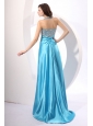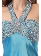 A-line Aqua Blue Halter Top Neck Beading Prom Dress with Sweet Train