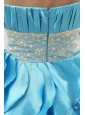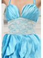 A-line Aqua Blue Halter Top Ruching Ruffles Lace Prom Dress