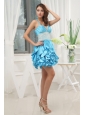 Home >  Prom Dresses >  Fashionable Prom Dresses > A-line Aqua Blue Halter Top Ruching Ruffles Lace Prom Dress