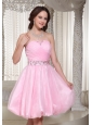 A-line Baby Pink Homecoming Dress With Beaded Decorate