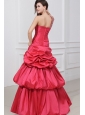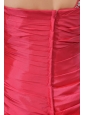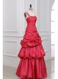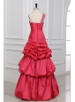 A-line Beaded Decorate One Shoulder Floor-length Prom Dress in Coral Red