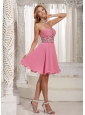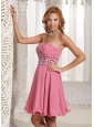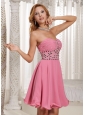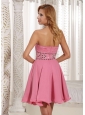 A-line Beaded Decorate Rose Pink Stylish Cocktail Dress With Mini-length in Summer